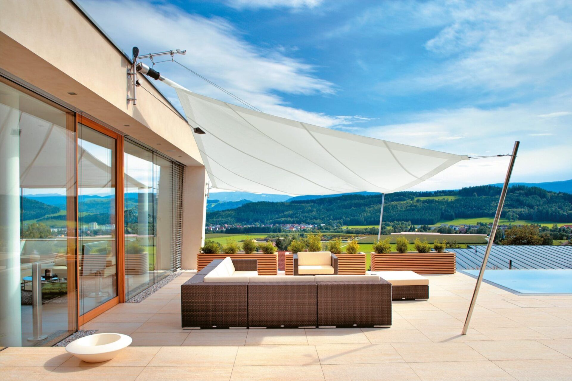 Il successo dell’installazione di una tenda a vela dipende da due fattori: il prodotto e la posa in opera. Per questo la nostra agenzia si avvale della collaborazione dei migliori brand, offrendo tende da sole a vela avvolgibili completamente automatiche, radio-comandate e con controllo della velocità del vento, protette da brevetto internazionale. Le corde da trazione sono resistenti ai raggi UV e all’abrasione, grazie ad un rivestimento intrecciato 32 volte. Le tele pregiate sono rifinite con cura, tinte in massa e resistenti ai raggi ultravioletti. La struttura è in acciaio inox AISI 316, con un complesso sistema di ancoraggio per garantire la massima sicurezza. Per l’installazione ci avvalliamo di personale specializzato e offriamo la nostra consulenza per una progettazione ottimale.