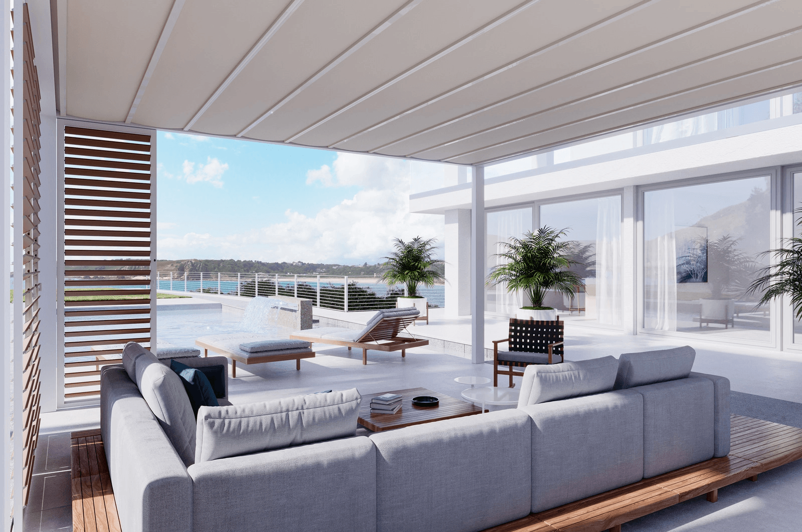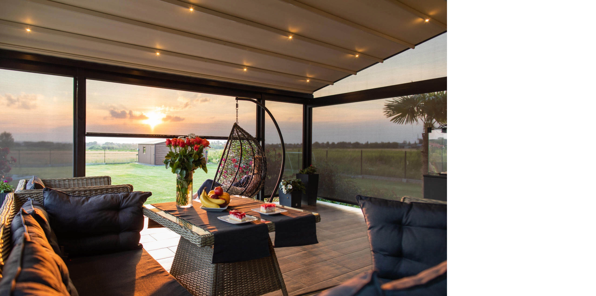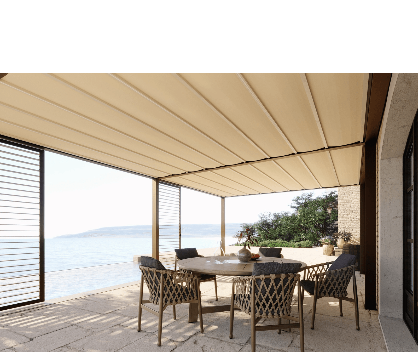 Offrono protezione totale dal sole e dalle intemperie, diventando uno spazio da sfruttare in ogni momento grazie alla possibilità di aprire anche parzialmente la copertura al fine di regolare il passaggio d'aria e di luminosità desiderati.