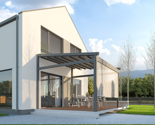 Si completa con l’inserimento di chiusure perimetrali con vetrate o Tende Antivento Zip con molteplici tipi di Tessuto.