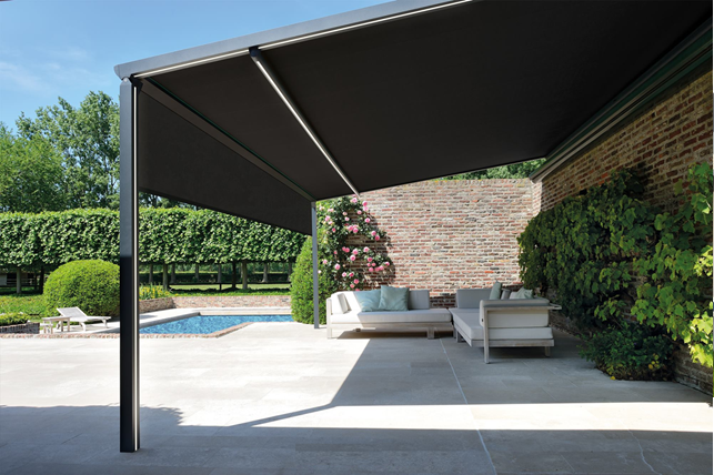 La tenda tensionata è brevettata per funzionare su pareti a zero gradi di inclinazione, strutturate in alluminio estruso di varie colorazioni, ideali per lucernari e pergolati.