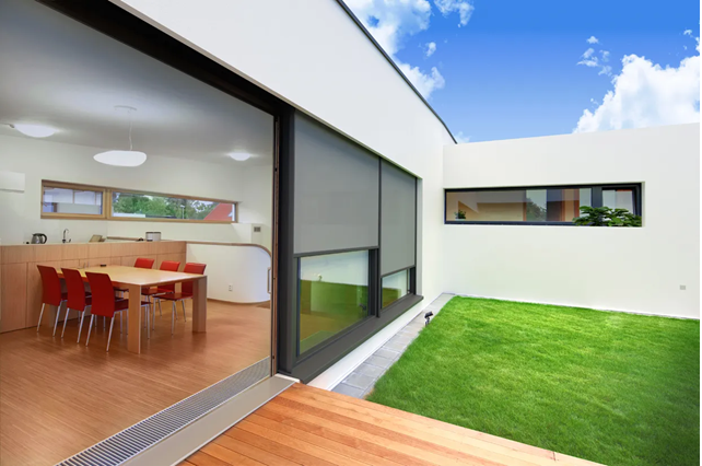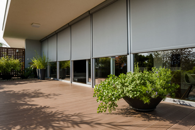 Utilizzando guide con cavo in acciaio inox, rendiamo il tutto più sicuro anche con condizioni atmosferiche non ottimali. In presenza di brezze sostenute, viene utilizzata una centralina del vento che consente il riavvolgimento all'interno del cassonetto.